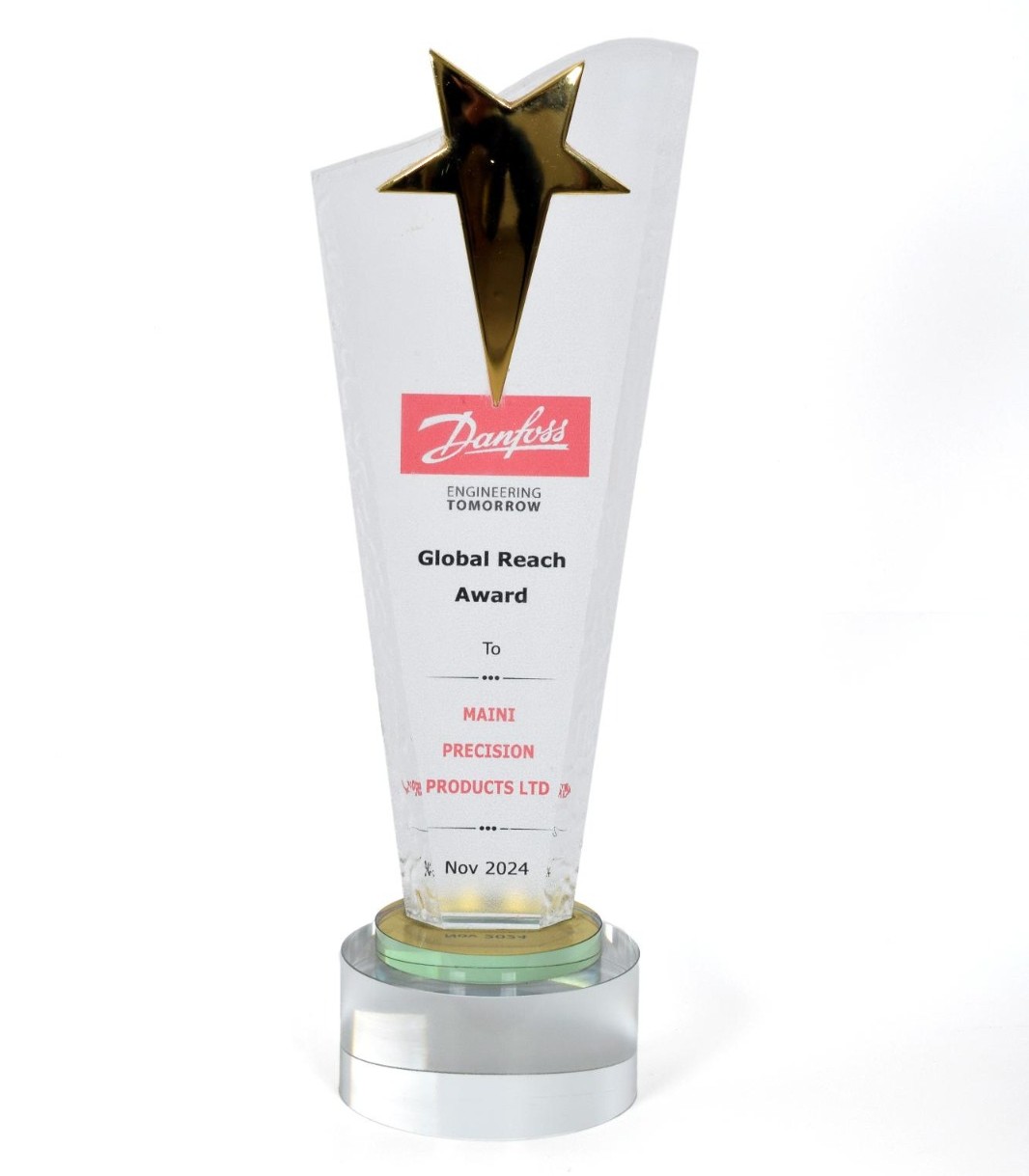 We are proud to share that Maini Precision Products Ltd. (Now JKMPTL) has been honored with the Global Reach Award by Danfoss.